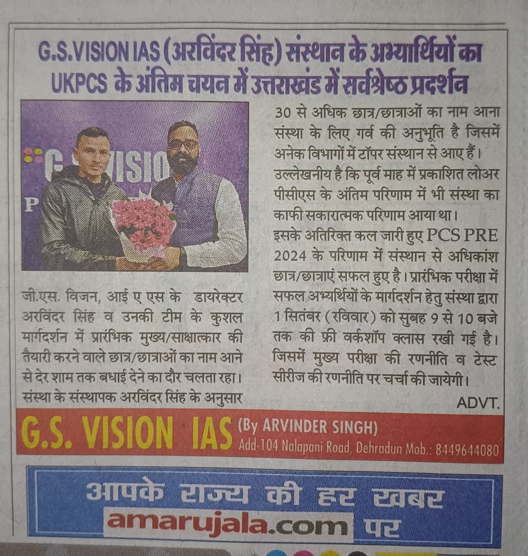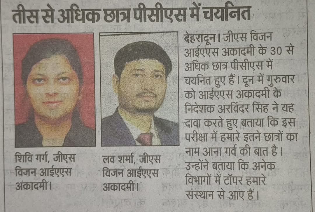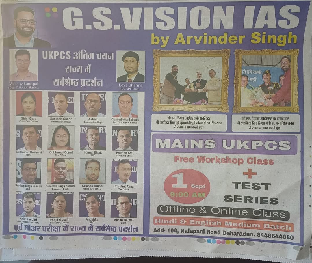 G.S.VISION संस्थान से UKPSC 2024 में 40+ छात्रों का चयन